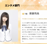 【乃木坂46】2017年「雑誌カバーガール大賞」白石、西野、飛鳥がベスト10ランクイン!!飛鳥はエンタメ部門1位もキタ━━━━(゚∀゚)━━━━!!